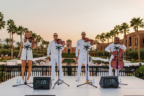 Set the romantic tone for your wedding ceremony with a classical string quartet. Playing throughout the gathering during the ceremony, they can play during the processional and recessional (entrance and exit of the bride).