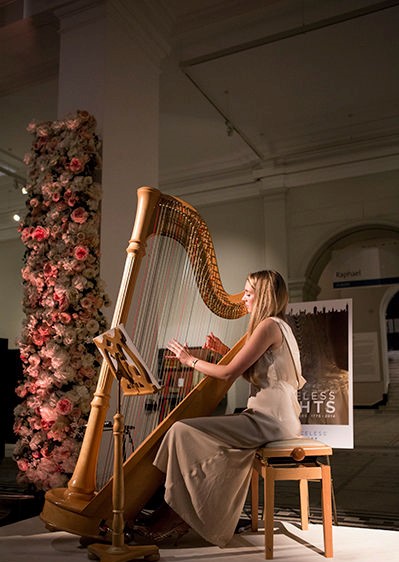 Our harpist has played at all of London’s major concert venues including the Royal Albert Hall, Royal Festival Hall and the O2 Arena